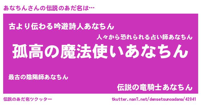 | 意味不明あだ名 | 『とにかく怪しいあなちん』 |