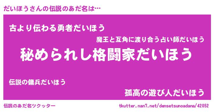 | 意味不明あだ名 | 『住所不定無職だいほう(6歳)』 |