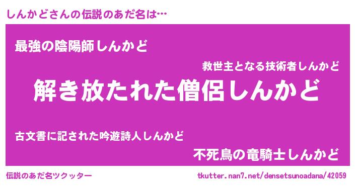 | ヒーロー風カッコイイあだ名 | 『幻影騎士シン』『ウルトラしんかどマン』 |