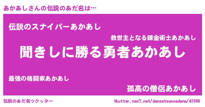 | 意味不明あだ名 | 『自称あかあし』『永久保存あかあし』 |