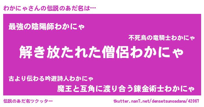 | 意味不明あだ名 | 『とにかく怪しいわかにゃ』 |