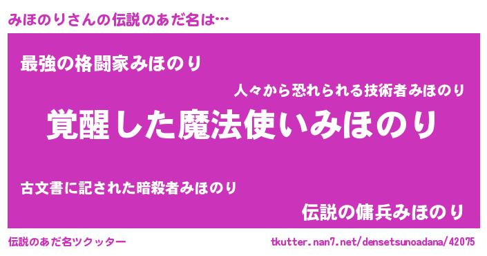 | ヒーロー風カッコイイあだ名 | 『炎刃騎士ミホ』『ウルトラみほのりマン』 |