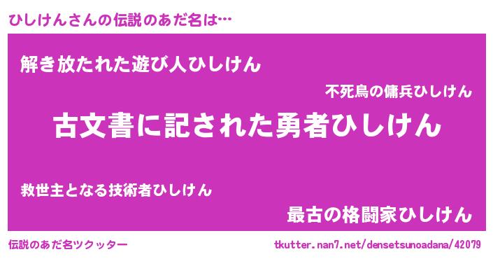 | ヒーロー風カッコイイあだ名 | 『ネオヒシケン』『炎刃騎士ヒシ』 |