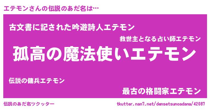 | ヒーロー風カッコイイあだ名 | 『仮面エテダー』『黄金騎士エテ』 |