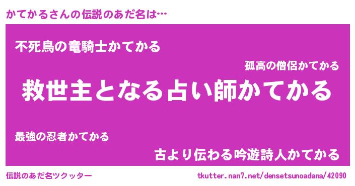| 意味不明あだ名 | 『住所不定無職かてかる(14歳)』 |