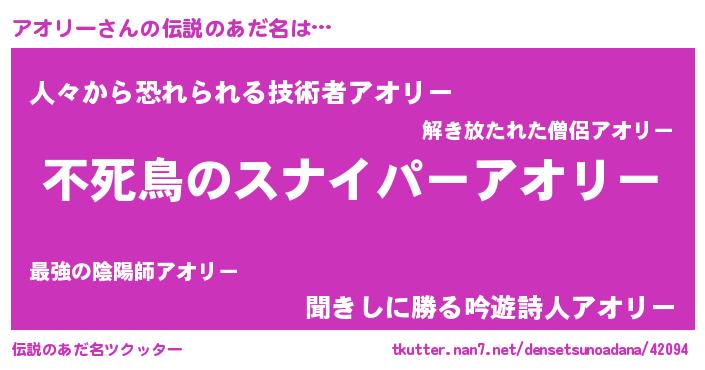 | ヒーロー風カッコイイあだ名 | 『仮面アオダー』『スーパーアオリー』 |