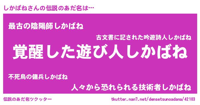 | ヒーロー風カッコイイあだ名 | 『仮面シカダー』『最強戦士シカバネ』 |