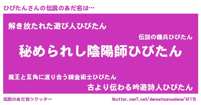| 男性向けラノベタイトル風あだ名 | 『ヒビタンスレイヤー』 |