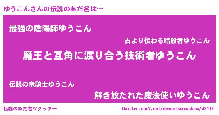 | ヒーロー風カッコイイあだ名 | 『サイバー戦士ユウコン』『仮面ユウダー』 |