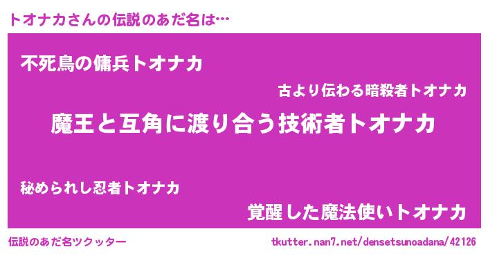 | 肩書あだ名 | 『トオナカ大佐』『トオナカ助手』 |