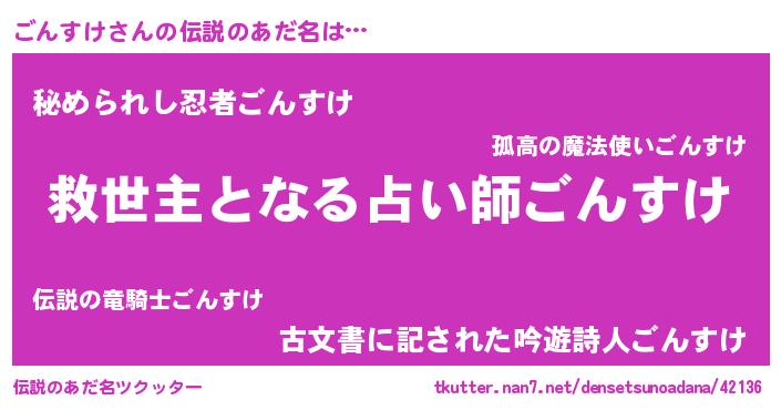 | ヒーロー風カッコイイあだ名 | 『最強戦士ゴンスケ』『仮面ゴンダー』 |