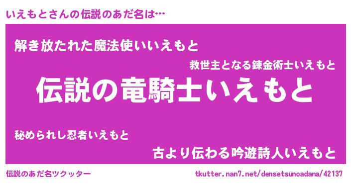 | ヒーロー風カッコイイあだ名 | 『スーパーイエモト』『魔戒騎士イエ』 |