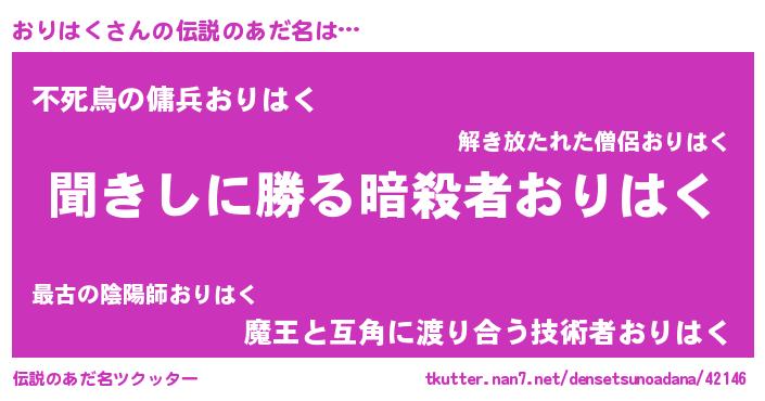 | ヒーロー風カッコイイあだ名 | 『ネオオリハク』『スーパーオリハク』 |