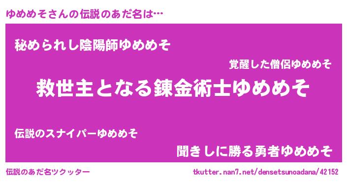 | 意味不明あだ名 | 『自称ゆめめそ』『ゆめめそフォーエバー』 |