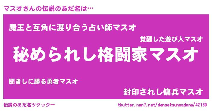| ヒーロー風カッコイイあだ名 | 『仮面マスダー』『ウルトラ戦士マスオ』 |