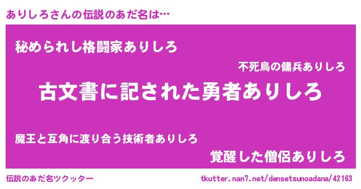 | ヒーロー風カッコイイあだ名 | 『究極戦士アリシロ』『ネオアリシロ』 |