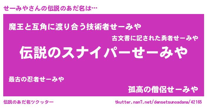 | 意味不明あだ名 | 『ペロリンせーみや』『自称せーみや』 |
