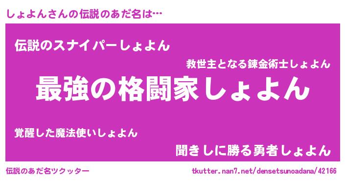 | 意味不明あだ名 | 『しょよんフォーエバー』 |