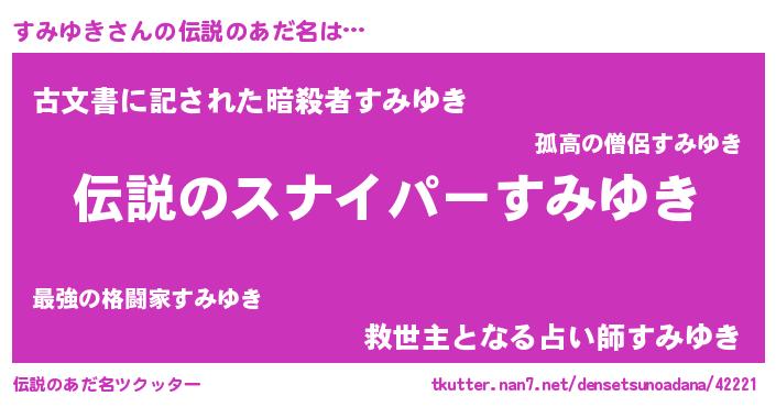 | 男性向けラノベタイトル風あだ名 | 『スミユキスレイヤー』 |