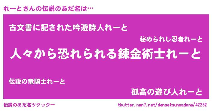 | ヘコむあだ名 | 『れーと(苦笑)』『れー太郎』 |
