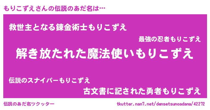 | ヒーロー風カッコイイあだ名 | 『魔戒騎士モリ』『正義の使者もりこずえ』 |