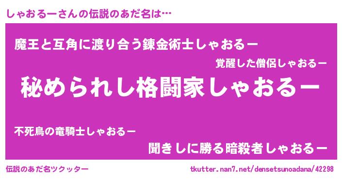 | ヒーロー風カッコイイあだ名 | 『ウルトラしゃおるーマン』 |