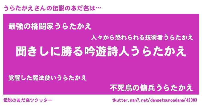 | 意味不明あだ名 | 『住所不定無職うらたかえ(13歳)』 |