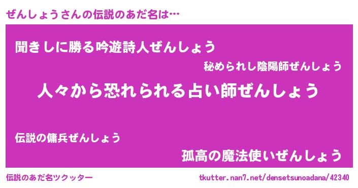 | ヒーロー風カッコイイあだ名 | 『友情の使者ぜんしょう』『天弓騎士ゼン』 |