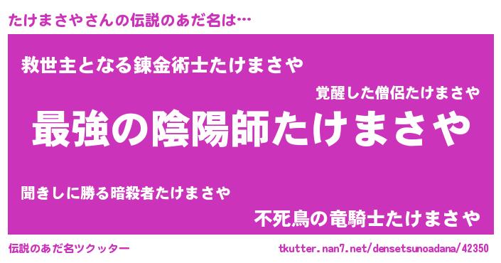 | 欧米人風あだ名 | 『たけまさや・ステッグマイヤー』 |