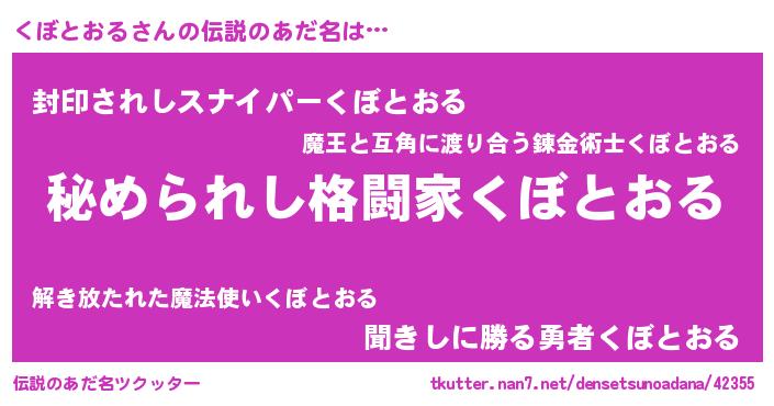 | 男性向けラノベタイトル風あだ名 | 『緋弾のクボトオル』 |