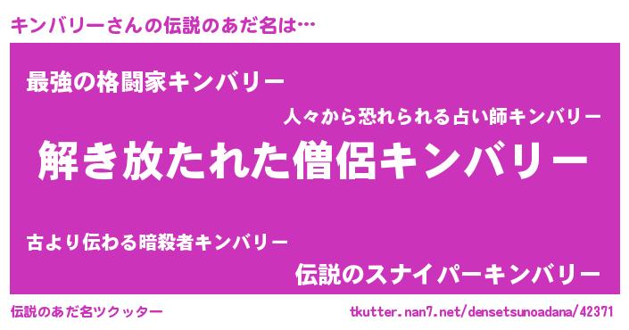 | 意味不明あだ名 | 『とにかく怪しいキンバリー』 |