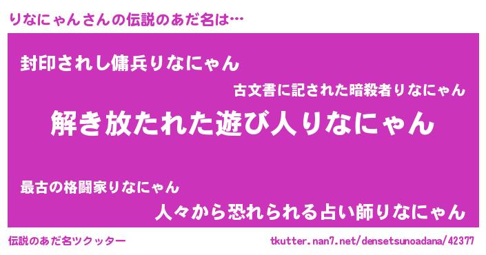 | ヒーロー風カッコイイあだ名 | 『銀牙騎士リナ』『スーパーリナニャン』 |