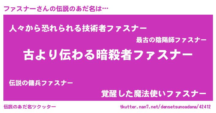 | ヘコむあだ名 | 『ファスナー(笑)』『ファお』 |