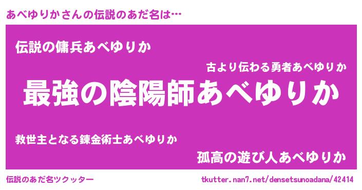 | ヒーロー風カッコイイあだ名 | 『最強戦士アベユリカ』『黄金騎士アベ』 |