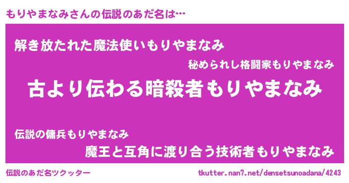 ヘコむあだ名 | 『もりやまなみ(苦笑)』『もり太郎』 |