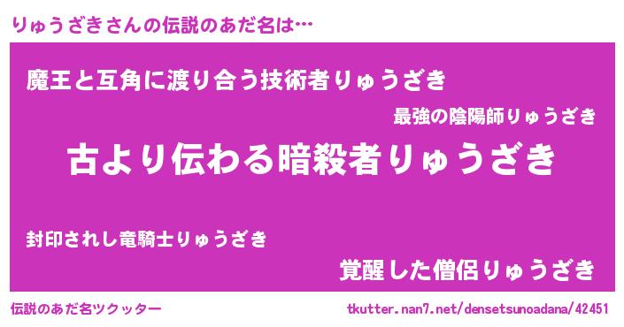 | 意味不明あだ名 | 『永久保存りゅうざき』『自称りゅうざき』 |