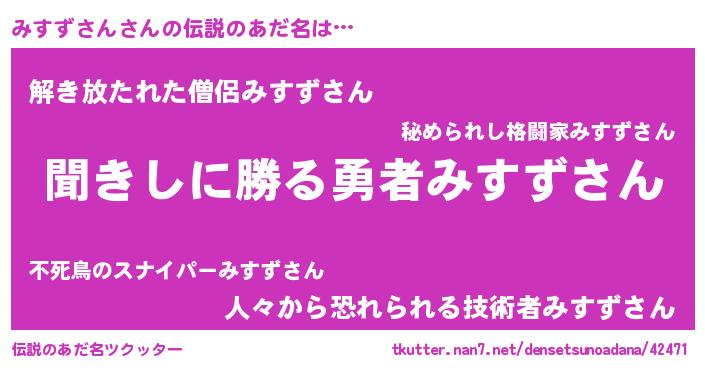 | ヘコむあだ名 | 『みすずさん(苦笑)』『みす太郎』 |