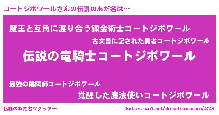 | ファンタジー風あだ名 | 『カークコーラー』『コーフェル』 |