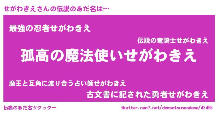 | 意味不明あだ名 | 『自称せがわきえ』 |