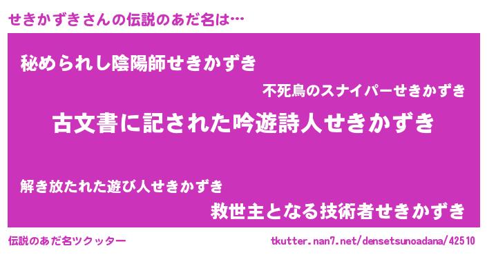 | 意味不明あだ名 | 『永久保存せきかずき』 |
