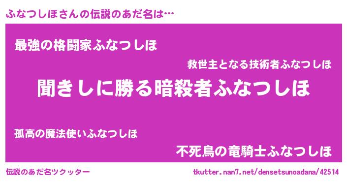 | 意味不明あだ名 | 『永久保存ふなつしほ』 |