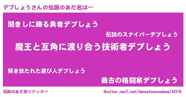 | ヒーロー風カッコイイあだ名 | 『友情の使者デブしょう』 |