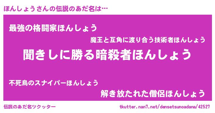| 胡散臭い通販商品みたいなあだ名 | 『絶対に幸福をもたらす健康食品…その名も「ほんしょう」』 |