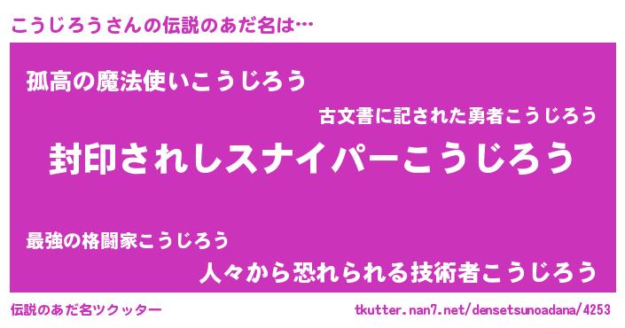 | 胡散臭い通販商品みたいなあだ名 | 『億万長者になれる霊験あらたかなお札…その名も「こうじろう」』 |