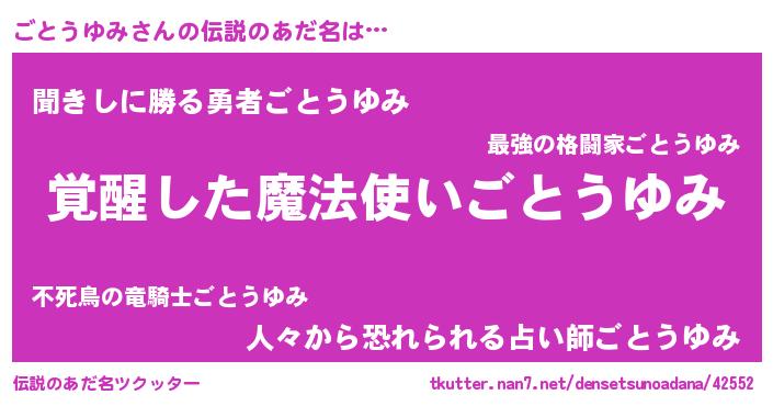 | 意味不明あだ名 | 『とにかく怪しいごとうゆみ』 |