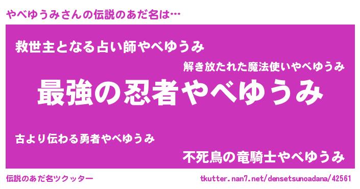 | 意味不明あだ名 | 『やべゆうみフォーエバー』 |