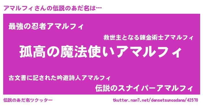 | ヒーロー風カッコイイあだ名 | 『暗黒騎士アマ』『スーパーアマルフィ』 |