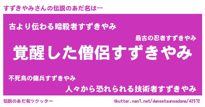 | ヒーロー風カッコイイあだ名 | 『天弓騎士スズ』『ネオスズキヤミ』 |