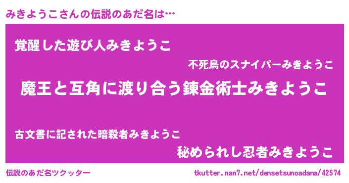 | 女子向けラノベタイトル風あだ名 | 『みきようこ恋絵巻』 |