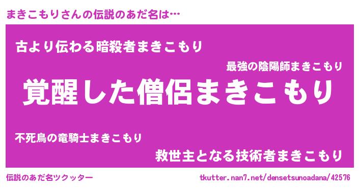 | ヒーロー風カッコイイあだ名 | 『炎刃騎士マキ』『ネオマキコモリ』 |